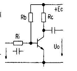 例题:右图所示放大电路中,已知EC=12V,β=50,Ri=1kΩ,Rb=220kΩ,Rc=2kΩ,其中Ri为输入耦合在该位置的等效。问:1.当输入信号最大值为+730mV,最小值为-730mV时,能否经该电路顺利放大?2.当β=150时,该电路能否起到正常放大作用?分析:当向三极管的基极输入正极性信号时,其基极电流会增大,容易进入饱和状态;当向三极管的基极输入负极性信号时,其基极电流会减小,容易进入截止状态。因此,解决输入信号送入放大电路能否顺利放大,主要是检查最大值(一般为正极性)的输入信号、最小值(一般为负极性)的输入信号是否引起放大电路中三极管进入了饱和状态、截止状态,如果两种输入信号都没有使三极管进入饱和、截止状态,那么该范围的输入信号送入放大电路后能被顺利放大。如果两种输入信号使三极管进入饱和或截止状态,则不能顺利放大,会引起信号饱和或截止失真。