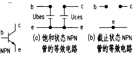 三极管饱和后,C、E 间的饱和RCE=UCES/ICS,UCES 很小,ICS 最大,故饱和RCES很小。所以说三极管饱和后G、E 间视为短路,饱和状态的NPN 型三极管等效电路如上图a所示。