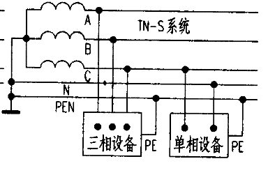 还不能满足对设备安全及电磁抗干扰性要求很高的场所。这样,就有了进一步的TN—S系统。俗称“三相五线制”。在TN—S系统中,PE线与零线N在系统中始终是分开的,平时PE线上无电流通过,只有在设备发生漏电或单相电源对设备金属外壳短路时。