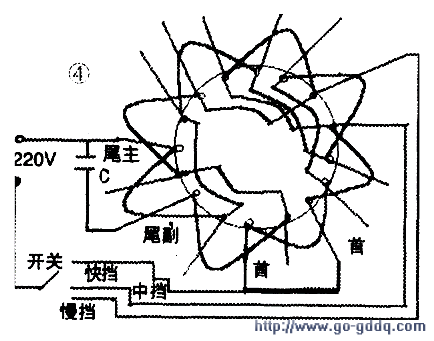 以16槽4极式台扇电动机为例。极相组内的线圈多采用连绕,中间没有接线头,但为了易学我们把它分开。