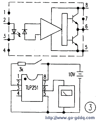 TLP251是变频器常用的光耦驱动电路,当功率模块击穿时常殃及该电路。其内部电路和测量方法如图3所示。当②脚经3kΩ与10V电源断开或接通时。⑥脚有0V或9V的高低变化。