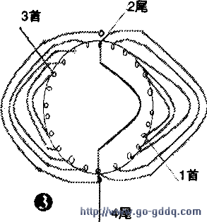 (2)对称按同样方法嵌入主绕组的另一半(如图1)。