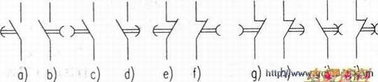 左凸右凹。延头瞬尾;左凹右凸。瞬头延尾:凹凸都有。延头延尾;NO、NC看常态。参看附图,图中共分五大类十种连接情形。凸凹是指触头的动触片上的动作方向呈凸形,或者呈凹形。左右是指触点相对于直线的位置。延头瞬尾是指线圈得电后触点延时动作。线圈失电后触点瞬时动作。瞬头延尾与延头瞬尾相反,NO、NC则是英文中的常开和常闭文字代号。例如,图中的f情形,它是右凹NC,由上述所说,第一,它应该属于延头瞬尾,即线圈得电后触点延时断开(动断),线圈失电后触点瞬时闭合,恢复常态;第二,它又应该属于NC常闭触点。结论:f是延时断开的常闭触点。另外,图中的i、j情形,动作方向既有凸又有凹,说明该触点在线圈得电或者失电后延时动作(动合或者动断)。