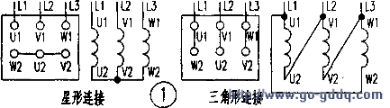 检修或重绕三相异步电动机的绕组时,其六条引出线的头尾必须分清,否则在接线盒内无法正确接线。按规定,六条引出线的头尾分别用U1、Vl、W1,U2、V2、W2作为标号(旧标号头尾分别为Dl、132、D3,D4、D5、D6)。其中U1、U2表示第一相绕组的头、尾端;V1、V2表示第二相绕组的头、尾端;WI、W2表示第三相绕组的头、尾端。不同字母表示不别,相同数字表示同为头或尾。电动机检修中,如果六条引线上标号完整,只有接线盒内接线板损坏,则更换接线板并按电动机铭牌上规定的接法正确接线即可。电动机接线方法分为星形(Y)、三角形(△)两种连接方法,如图1所示。如果六条引线上的标号已被破坏,或重绕电动机绕组后,必须先确定六条引线的头、尾端并进行标号。然后再按规定接到接线板上。