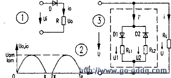 半波(图1)的用途很广。经后,可用于一些对波形要求不高的直流。在家电中,还可用来降低输出功率。如在厨房、卫生间的白炽灯照明灯电路中,串联一只二极管,可延长该白炽灯的使用寿命;普通电热毯的“保温”挡,也不过是通过开关的切换串进了一只二极管而已。