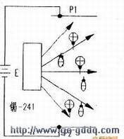 这是一种用于火灾报警的件,它利用火灾时总是先有烟、后有火而实现提前报警,其结构原理。该传感器由内、外两个电离室组成。电离室内有P1、P2的一对电极。外电离室有孔与外界相通,烟雾可以进入;而内电离室是密封的,烟雾不能进入。在电极P1、P2之间放有放射性同位素镅-241的α放射源。这个放射源能连续放射α射线,使极间的空气电离而产生正离子和负离子(即电子),这样P1、P2两极间便因为电荷的流动而具有导电性。在这对电极端加上E时,正、负离子便向极性相反的方向运动而形成。当电压高到一定值时,离子电流便成饱和状态。