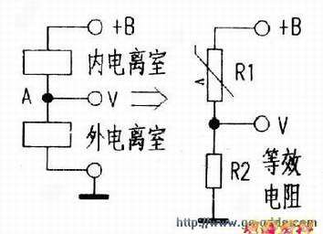 由于内外电离室的电极是串联的,在没有烟雾进入时,A点电位等于0.5E;当有烟雾进入时,外电离室的极间等效增大,使A点电位降低,A点电位降幅与烟雾浓度成比例。有烟雾与没烟雾时,A点电位差可达1V以上。利用该电压的变化,就可控制电子实现报警。
