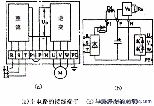 (3)P、N为后直流电路的+、一端子;(4)P+为整流桥输出的+端,出厂时P+端与P端之间用一铜片短接。在需要接入直流电抗器DL时,拆去铜片,将DL接在P+和P之间。