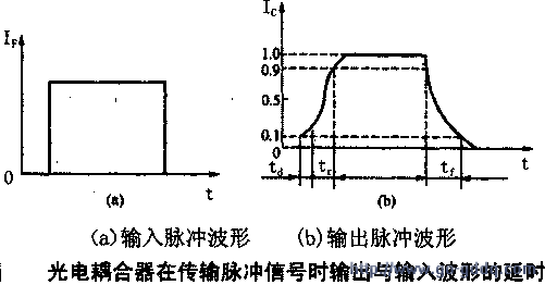 光电耦合器与三极管一样可以线性工作,也可工作在开关状态。在的驱动中,“光耦”一般用来传递脉冲信号,工作于开关状态。工作在高频时,应考虑“光耦”的,包括:延迟时间Td、上升时间tr、下降时间tf,如下图(a)(b)所示。为了得到快速响应,常选用高速“光耦”。在“光耦”电路中,Rl的大小影响“光耦”的响应时间,Rl越小,“光耦”的响应时间越短。在使用时,在“光耦”允许的集电极电流范围内要尽量减小负载以提高“光耦”的响应速度。