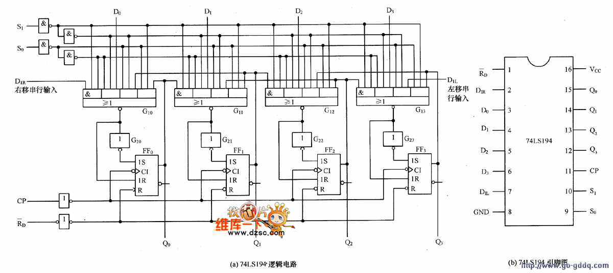 图1 集成双向移位寄存器74LS194