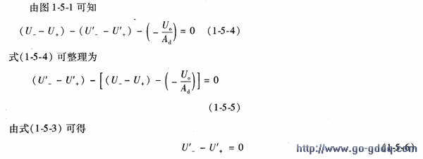 式(1-5-6)表明,实际运放的虚地点不在M点,而是移动到Ⅳ点。所以,当Ad为有限值时分析运放 ,要用图所示的运放电路。