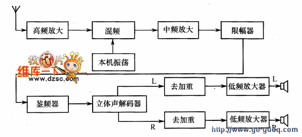 调频立体声收音机电路和单声道调频收音机电路的区别是一个是两个声道的(左声道L和右声道R),一个是单声道的,其中R,L声道对信号的处理是一样的。因发射调频立体声节目时,要对R,L信号进行处理,所以在 接收机 中,要对R,L信号进行相应的处理。
