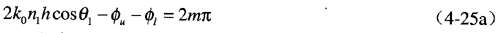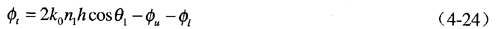 从式(4-18)到式(4-20)可以看出,的变化是在光波导的上、下边界反射引起的。我们分别用仉和钙表示。这样,总相移就可以写为