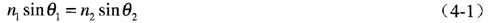 首先考虑在折射率为n1的媒质中传输的一束光(Ei),以入射角0,入射到两种媒质的界面上,如图1所示。光在界面上一部分被传输(Et),另一部分被反射(Er)。由菲涅耳定律可得出折射率n1、n2与入射角θ1、折射角θ2之间的关系为