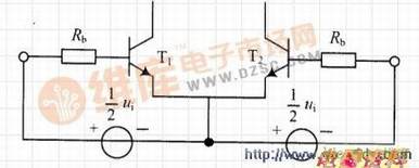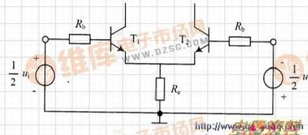 图1所示为典型长尾式单端输入差分放大电路,利用电路分析的方法将单端输人 信号线 等效变换成差模输入信号、共模输入信号的叠加,可深入理解输入信号线经发射极耦合传输、等效变换的过程。