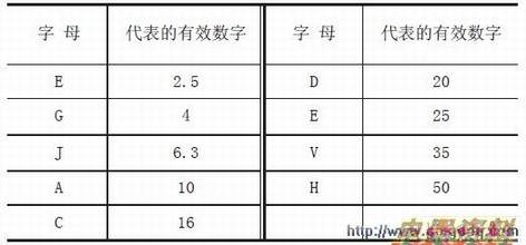 表4 贴片电解电容代码中字母与耐压值的关系表