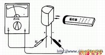 将 置于R×1k档,测量红外光敏 的正、反向 值。正常时,正向值(黑表笔所接 引脚 为正极)为3~10 kΩ左右,反向值为500 kΩ以上。若测得其正、反向电阻值均为0或均为无穷大,则说明该 已或开路损坏。