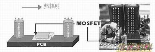 通常CPU 和北桥芯片都会使用专用的散热装置降低温度,但是用于CPU 供电的场效应管却没有任何的散热措施。(脉宽)电路是CPU 电源供给电路中的核心组成部分,其核心器件 MOSFET 在工作中会释放大量热能,而这区域也是 电子 器件最为密集的部分。通常情况下,MOSFET 紧贴主板装配,借助主 板进行散热,从而直接将热量传递给其周围的电容(图1)。