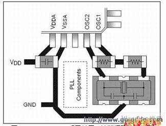 图2.MC68HC908?C采用基于三端谐振器的振荡器