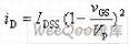 当vDS为某一固定值(例如10V),使iD等于某一微小(例如50mA)时,栅-源极间所加的电压即夹断电压。