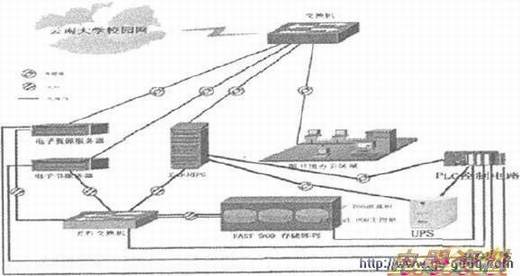 现在的服务器存放数据大多采用SAN(Storage Area Network)架构的网络存储模式,依靠系统管理人员手动启动或手动关闭服务器等设备。一旦停电,若处理不及时,必然导致数据丢失。下面我们以云南大学图书馆基于SAN架构的IBM FAST 900存储为例(如图1)。