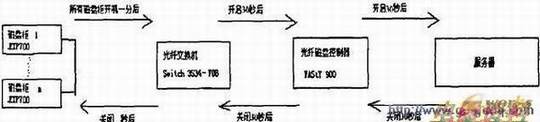 服务器机房系统中有UPS、磁盘柜(EXP700)、光纤交换机(Switch 3534-FO8)、光纤磁盘控制器(FAST 900)、服务器,整个系统的开启和断开都是有顺序而且对时间也有一定要求。一旦顺序紊乱,就会导致数据丢失。