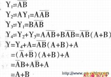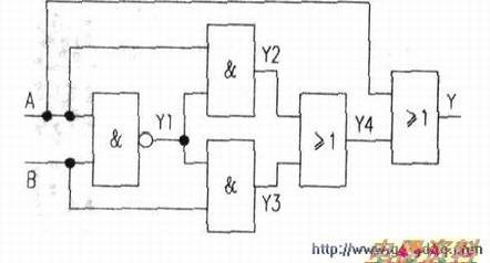例1:已知下图所示,试写出输出端Y与输入端A、B闯的函数关系式并化简。