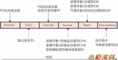 图9 流水线不同工作阶段操作内容 流水线的工作全部为单字指令连续执行时(理想情况)如图10 所示。