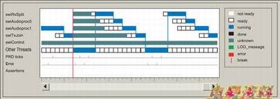 eXpress 的内核是 DSP/ 内核,这是一种实时调度程序,该程序包括各种模块以处理各项中断、传输数据的管道和性事件。事实上,DSP/BIOS 构成了支持 320C 系列的 RTOS 的基础。Code Composer Studio IDE 拥有一个 DSP/BIOS 配置工具,它使你能够在程序编译期间选择包括哪些模块,从而使该固件的内存占位(memory footprint)达到最小。非常关键的是,每个 DSP/BIOS 模块都包括代码安插机制,允许 Code Composer 通过 USB 仿真链接来调试运行中的应用程序。为了使对实时操作的影响最小,当 DSP 芯片处于代码线程执行之间的闲置状态时,安插代码才开始运行。你可以在它以图形格式在线程之间切换时查看执行图,这种格式帮助揭示被超过的截止期限(图 1)。其它使时序要求严格的任务分析变得容易的工具包括一张 CPU 图和一个统计窗口,后者报告某个线程的平均情形和最差情形执行时间。你还可以从某个驻留在 PC 上的文件传送数据,比如来自 的输出,它代表了你想处理的真正信号。DSP/BIOS 提供了一组定义得非常好的 API,它们适用于整个 320Cxx 系列,这样你可以轻松地在各种平台之间移植代码。通过禁止直接访问外设和坚持可重入的可重定位码,eXpressDSP 算法标准允许你轻松集成来自德州仪器公司和第三方厂商的符合标准的算法。你可以下载免费的 DSP/BIOS 驱动程序开发工具包。