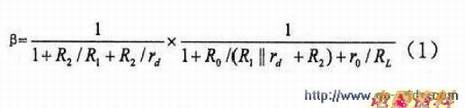 分析图1所示的放大器,这是一个典型的负反馈系统,将它等效成图2所示的负反馈电路的基本结构。其中α为该放大器的前向增益,称为该运算放大器电路的开环增益。β为该反馈网络的增益,称为该运算放大器电路的反馈系数。为了求出B,除去全部输入源,切断运算放大器并用它的输入rd和输出r0代替,以保持相同的状况。然后,经由r0外加一个测试源vT,如图3所示,求出跨在rd上的差值vD,则