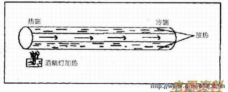 1.热管的传热原理热管(见附图)是一根两端封闭的金属管,管内衬了一层多孔材料,叫作吸收芯。吸收芯中间充以酒精或其他液体。当对管的一端加热时,吸收芯一端的液体吸热而汽化,蒸汽由热端跑到冷端,在冷端放热而液化,冷凝的液体进入吸收芯,通过毛细作用又回到热端。如此反复,热管里的液体不断地通过汽化、液化,把热从热端“运送”到冷端。