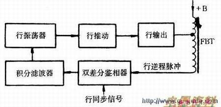 若行输出的行频为1 5625Hz,经反馈的行逆程脉冲与行同步信号,在鉴相器内进行比较,输出的相位控制电压将为零。若行振荡器输出的行频或相位发生偏离,则反馈回鉴相器的行逆程脉冲与输入鉴相器的行同步信号经比较后,就会有一误差电压输出。这个电压称为行触℃电压,用来纠正行振荡器输出的频率及相位。