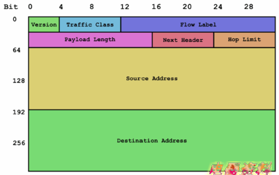 IPv6封包的架構說明。IPv6封包由两个主要部分组成:头部和。