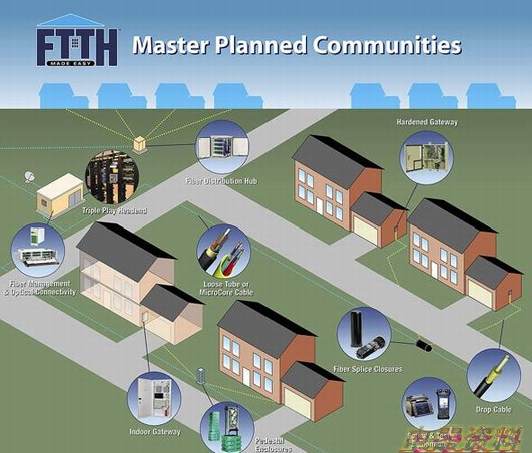 and N for node or neighborhood) 其中FTTH光纤到户,FTTP光纤到驻地,FTTC光纤到路边/小区,FTTN光纤到结点。