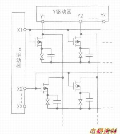 水平(X)一组像素电路选通电极都连在一起,称之为行电极,而场效应管G极连接在一起的线路,叫作栅极母线。把纵向(Y)一组像素信号输出电极都连接在一起,称之为列电极,而场效应管S极通过液晶后连接的线路工作源极母线。场效应管的漏板连接在一起,称之为公共电极。在液晶显示板上,每一个像素在列与行的位置中是唯一确定的。与液晶并联,以维持像素信号。