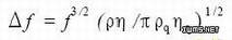 ρ、η、ρq 、ηq 分别表示溶液的密度、粘度和纯水的密度、粘度。除盐溶液和高聚合物溶液外,在其它溶液中晶片的频率变化Δf中与溶液的(ρη) 1 /2是呈线性变化的[ 25 ] 。