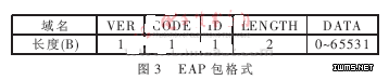 其中CODE域标识EAP请求或EAP应答;LENGTH域标识EAP包的长度;DATA域的格式由CODE域决定。