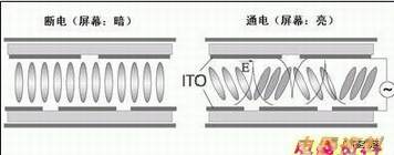 IPS一个最大特点就是它的电极都在同一面上,而不象其他液晶模式的电极是在上下两面。因为只有这样才能营造一个平面电场以驱使液晶分子横向运动。这种电极对显示效果有负面影响:当把加到电极上後,*近电极的液晶分子会获得较大的动力,迅速扭转90度是没问题的。但是远离电极的上层液晶分子就无法获得一样的动力,运动较慢。只有增加驱动电压才可能让离电极较远的液晶分子也获得不小的动力。所以IPS的驱动电压会较高,一般需要15伏。由於电极在同一平面会使开口率降低,减少透光率,所以IPS应用在 TV上会需要更多的背光灯 如图,细条型的正负电极间隔排列在基板上,有些类似早期的VA模式液晶。把电压加到电极上,原来平行於电极的液晶分子会旋转到与电极垂直的方向,但液晶分子长轴仍然平行於基板,控制该电压的大小就把液晶分子旋转到需要的角度,配合偏振片就可以极化光。