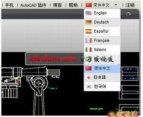 一旦您登陆或者打开的应用程序是www.autocadws.com, 那么您会在右上角看到一个面旗帜以及其对应的语种。点击旗帜,您会看见有一个下拉菜单,选择其中一种适合您的语言。您选择的语言将被保存下来,当下次再打开时,会自动切换为上次选择的语言。