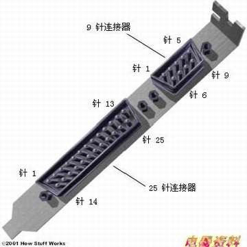 ![]() 9针 和25针串行连接器特写 |