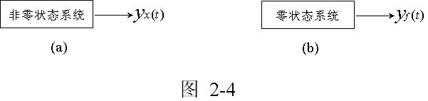 在图2-2中,若激励f(t)=0,但系统的初始条件不等于零,此时系统的响应即为零输入响应yx(t),如图2-4(a)所示。根据式(2-5)可写出此时系统的微分方程为: |
