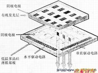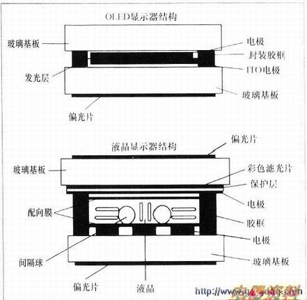 OLED显示器结构比TFT-LCD简单,如下图所示。