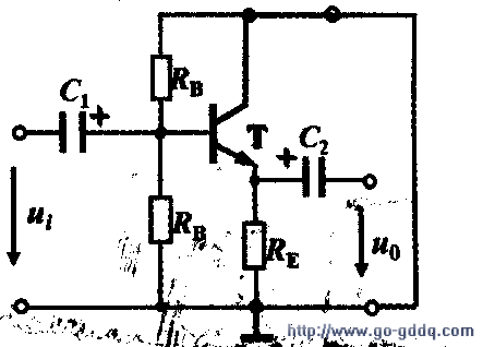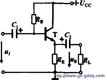 共集电极放大电路如图所示,其特点是:的集电极直接与直流U相接,接在发射极两端。显然,电路的输入极为基极,输出极是发射极。