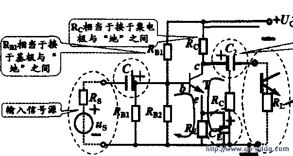 Ri=Rbe//Rb1//Rb2由于小信号电路有Rb1和Rb2>>Rbe,所以Ri≈Rbe。