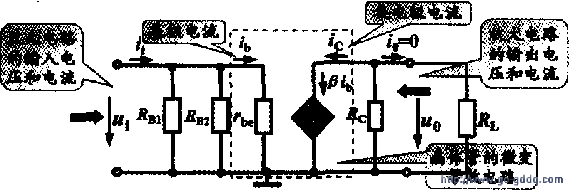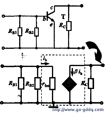 在晶体管的微变等效电路中,Rbe是晶体管输入端的等效电阻;受控电流源相当晶体管的集电极电流。显然,微变等效电路反映了晶体管电流的“以小控大”作用。