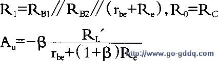 其中Rl'=Rc∥Rl显然,放大电路带上负载后,其电压放大倍数将降低。负载越大,Rl'等效电阻越小,放大倍数下降越多。