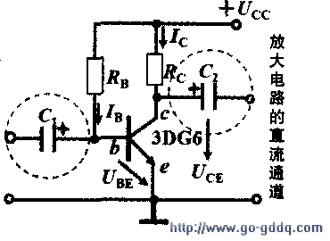 直流下耦合C1、C2相当于开路,由直流通道求工作点上的Ib:由图可得Ib=