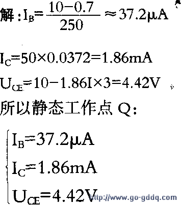 在静态分析中,应先估算Ib,再求Ic,最后算出Uce,下面举例说明。