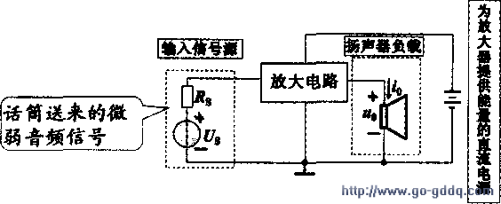 所谓“放大”,是指将一个微弱的电信号,通过某种装置,得到一个波形与该微弱信号相同、但幅值却大很多的信号。这个装置就是放大电路。“放大”作用的实质是电路对、或能量的控制作用。扩音器中的放大电路如图所示。