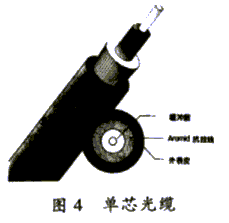 光纤和同轴电缆相似,只是没有网状屏蔽层。中心是光传播的玻璃芯。在多模光纤中,芯的直径是15mm~50mm,大致与人的头发的粗细相当。而单模光纤芯的直径为8mm~10mm。芯外面包围着一层折射率比芯低的玻璃封套,以使光纤保持在芯内。再外面的是一层薄的塑料外套,用来保护封套。光纤通常被扎成束,外面有外壳保护。纤芯通常是由石英玻璃制成的横截面积很小的双层同心圆柱体,它质地脆,易断裂,因此需要外加一保护层。其结构如图1所示。